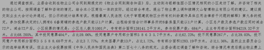 注:经社区工作人员核对,上述同一业主在小程序投票66次,与手工签名投票67次对应房号吻合,但有1次之差。如果该业主实际拥有67套而非66套房产(需要进一步核查),则总户数应再减1,等于1000.于是参加投票比例为60.4%.