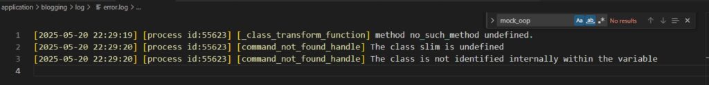 - enable_oop false 后, error.log 写入以下日志(注意应事先保证 set +e, 否则从第二个起的错误将没有机会展示):