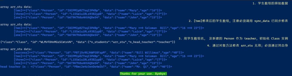 aop caption right "4. 通过对象方法修改 arr_stu 无效; 必须通过其自身"